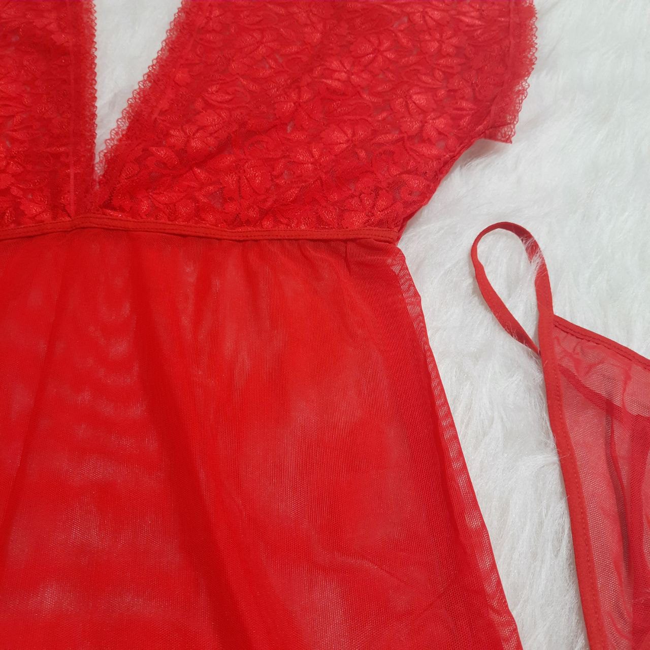 لباس خوابهایی که ترکیبشان تور و دانتل است همیشه از همه سنین و همه سایزها طرفدارانِ خاصِ خودشان را داشتهاند. کد 076 نیز همین ترکیب پارچه را انتخاب کرده تا در ذهنِ مخاطب زیبا جلوه کند. دانتل سینه یقهباز و آستیندار طراحی شده تا در نوع خود خاص و کمنظیر باشد. اما بخش میانتنه از الگویِ کلاسیک تور بدننما استفاده کرده تا با همراهی شورت لامبادا هیجانانگیز به نظر بیاید. انتخاب دو رنگ قرمز و مشکی برای این لباس، پاسخِ تولیدکننده به تقاضای بیشتر مصرفکنندگان است.