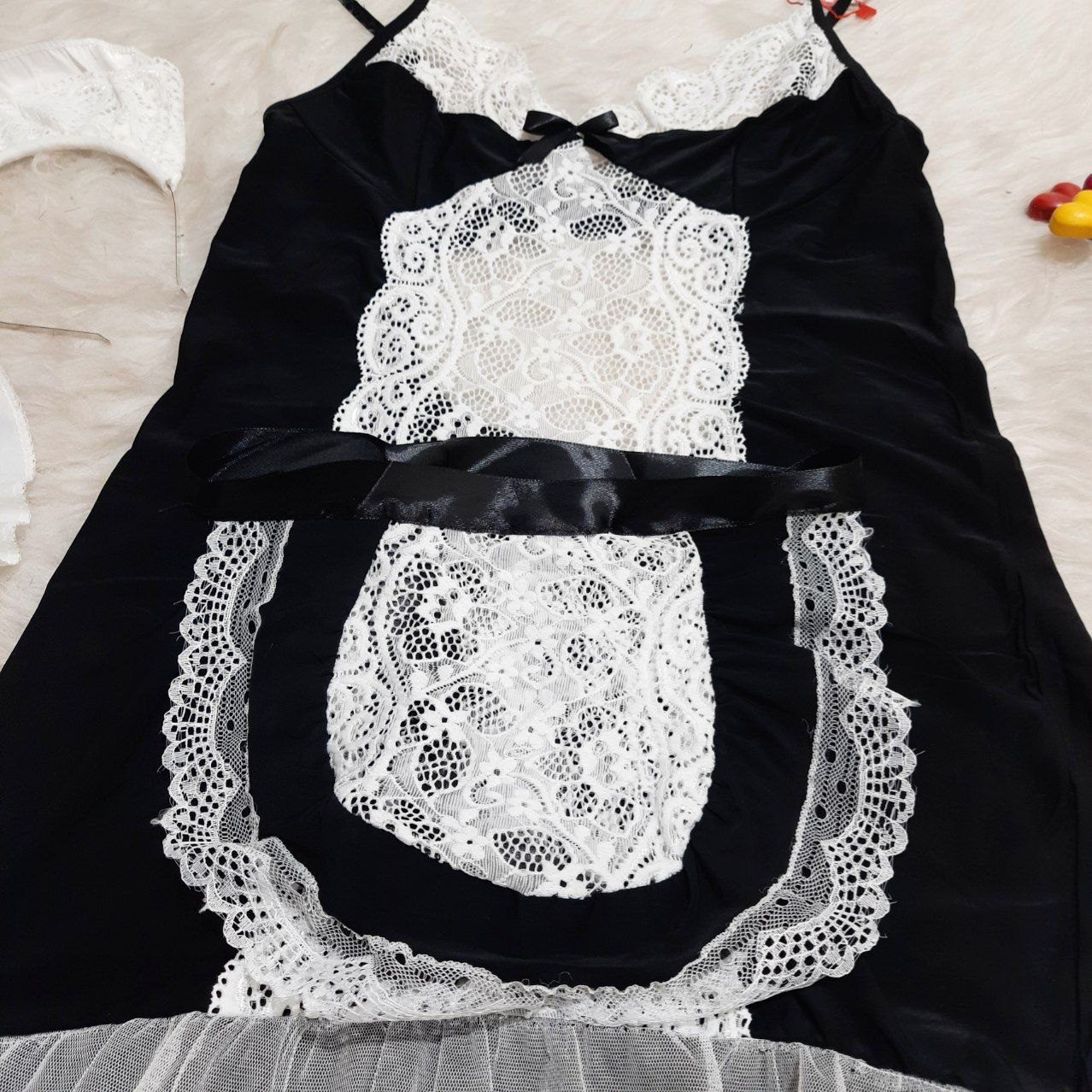• 9 تکه (شامل جوراب، گردن‌بند، بازوبند، حلقه دور پا، پیش‌بند، شورت و تل)